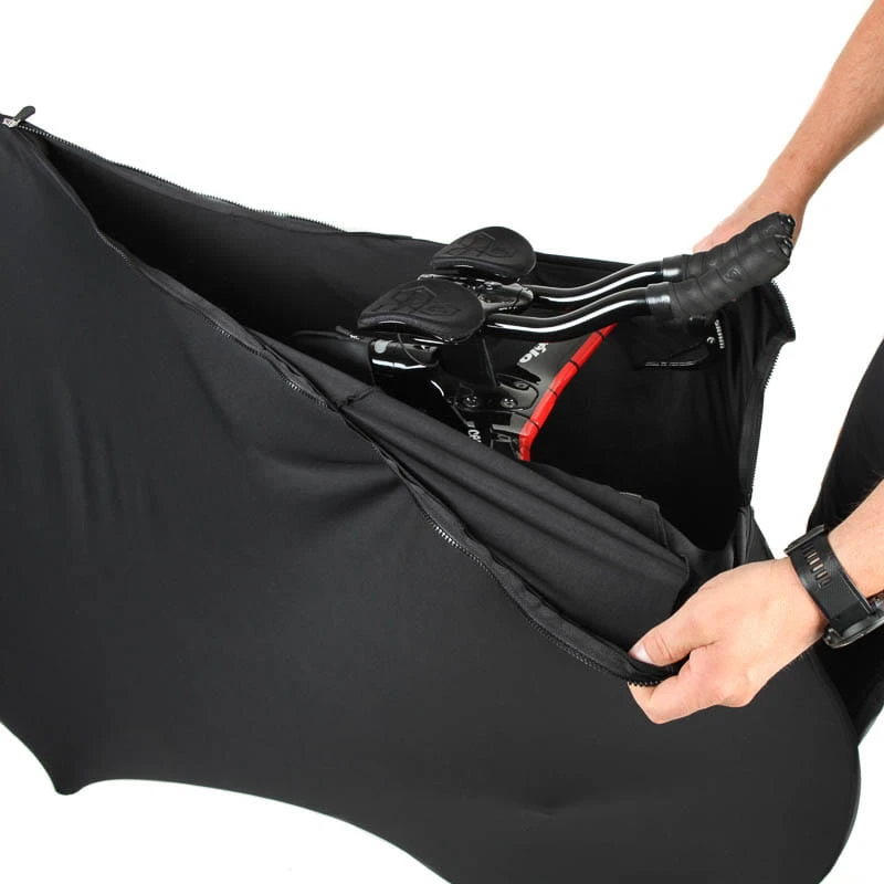 Viele nehmen den Fahrradüberzug auch mit in den Urlaub. Er ist sehr klein zusammanfaltbar und sehr leicht. Im Hotel kann man sein Rad einpacken und an die Wand stellen. Schützt vor Blicken anderer und der Hotelier freut sich, dass das Rad keinen Schmutz machen kann.