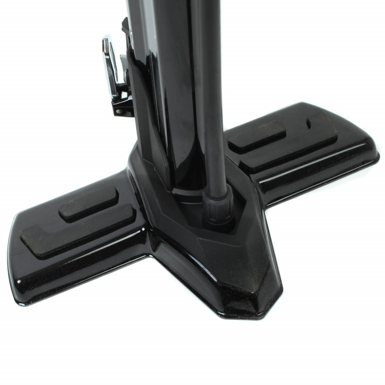 Eine der hochwertigsten Pumpen von Airace! Sie hat einen robusten Alukörper und der Standfuß ist auch aus Aluminium. Damit ist gewährleistet, dass sie lange hält und vor allem auch die sehr hohen Luftdrücke von bis zu 16,5 Bar pumpen kann. 16,5 Bar benötigt man zwar nicht im normalen Bike-Alltag, aber die hohe Kapazität bedeutet gleichzeitig, dass die üblichen 8,5-11 Bar sehr einfach zu pumpen sind und keine Herausforderung für die Pumpe darstellen.