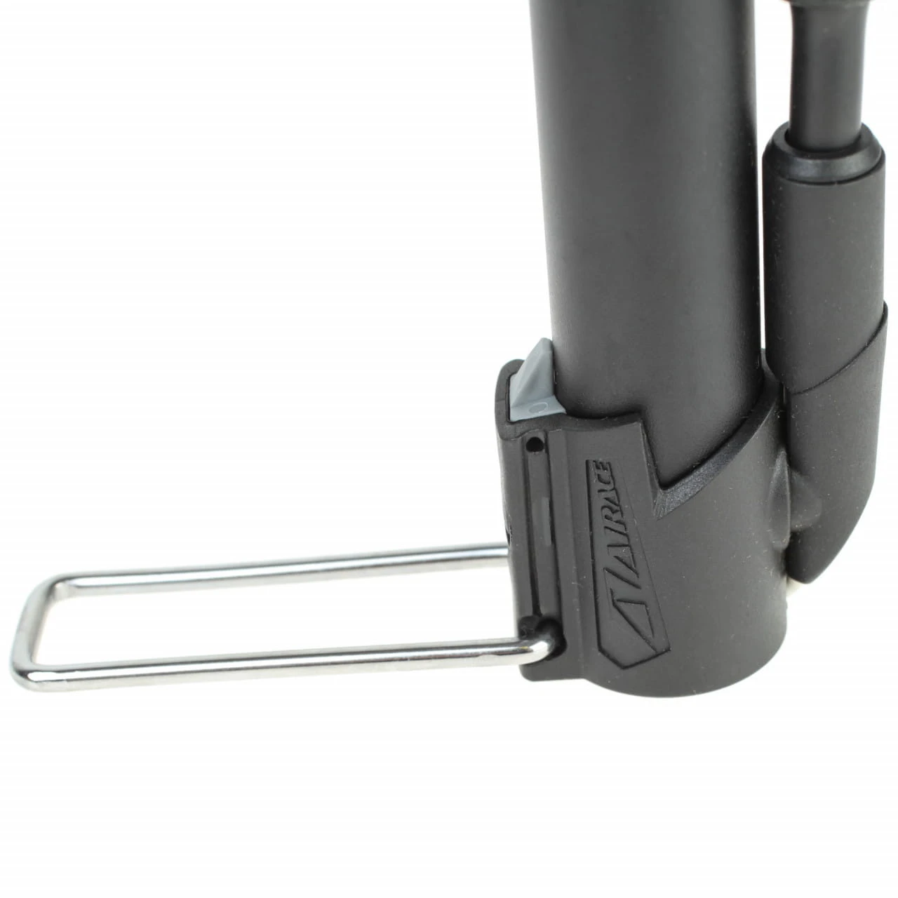 Andere Mini-Standpumpen haben oft das Problem, dass man sich leicht die Finger klemmen kann. Die Airace Mini-Standpumpe ist da besonders konstruiert: durch das Umklappen des Hebels entsteht ein etwa 3,5 cm langer Bereich unter dem Griff, bevor der Zylinder beginnt. Damit kann man den vollen Hub pumpen, ohne Gefahr zu laufen sich die Finger einzuklemmen.