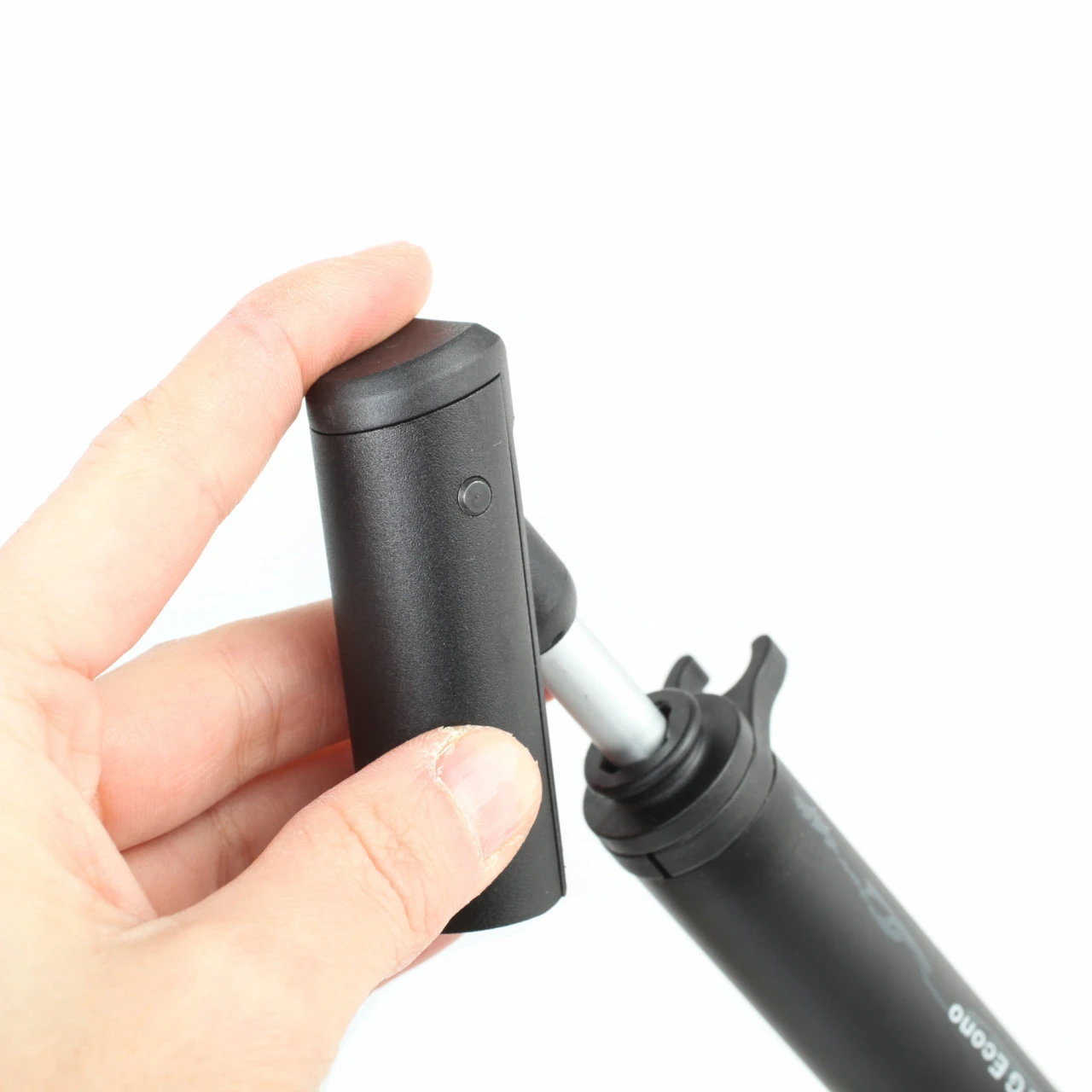 Diese Pumpe muss nicht am Ventil gehalten werden, sondern wird mit einem Hebel einfach an das Ventil angebracht. Das ermöglicht einfacheres pumpen und es geht keine Luft am Ventil vorbei.
