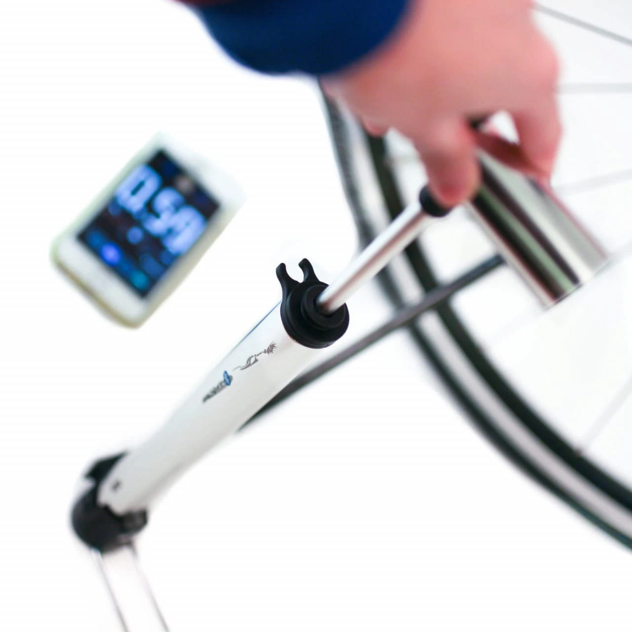 Die Bluetooth Luftpumpen von Airace bieten die Möglichkeit den Luftdruck bis auf die Kommastelle genau abzulesen, ohne dass eine zusätzliche Skala an der Pumpe benötigt wird. Sie ist groß genug, um damit noch recht komfortabel seine Rennrad- oder Mountainbike-Reifen aufzupumpen, aber immer noch klein genug, um sie auch am Fahrrad transportieren zu können (Halterung wird mitgeliefert).