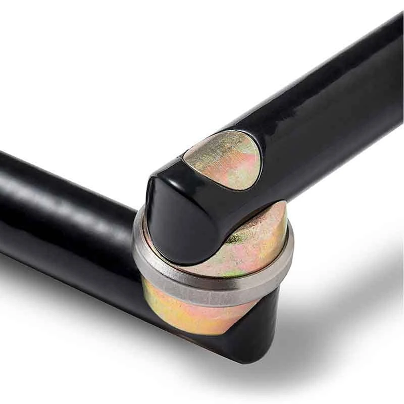Ich bin schon den Vorgänger ein Jahr lang hier in Hannover gefahren. Ein Nachteil war bisher immer die Länge. Da hat Altorlocks jetzt nachgebessert und die Schlösser werden jetzt in 77,5 cm Länge angeboten. Außerdem wurde das Schloss an den Gelenken noch sicherer gemacht. Titan ist an sich schon ein harter Werkstoff, in der Ausführung Grade 5 hat Altorlocks die stabilste Variante verbaut.