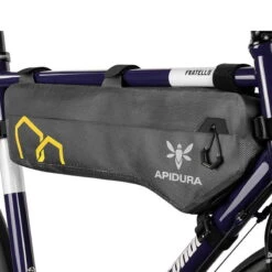 Wer abseits der asphaltierten Straßen unterwegs ist, braucht eine Tasche, die was ab kann. Deswegen hat Apidura ein super robustes und wasserdichtes Material ausgewählt und die Nähte versiegelt. Außerdem wurde die Tasche an kritischen Stellen, die besonders oft das Fahrrad berühren, zusätzlich verstärkt. So eignet sich die Tasche auch für raue Bedingungen.