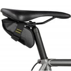 Die Saddle Pack kann ganz einfach per Klett- und Klickverschluss an der Sattelstütze und den Sattelstreben befestigt werden. Mit dem Rolltop lässt sie sich anschließend optimal an die Größe des Inhalts anpassen und bietet so auch für sperrige Gegenstände ausreichend Platz.