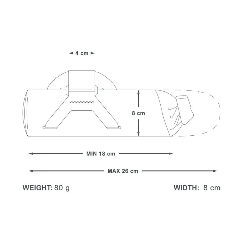 Die Befestigung der Tasche erfolgt über einen Spannriemen, welcher per Klett fixiert wird. Ein integriertes Stabilitäts-System gewährt optimalen Halt an Unterrohren mit verschiedenen Durchmessern und Materialien.