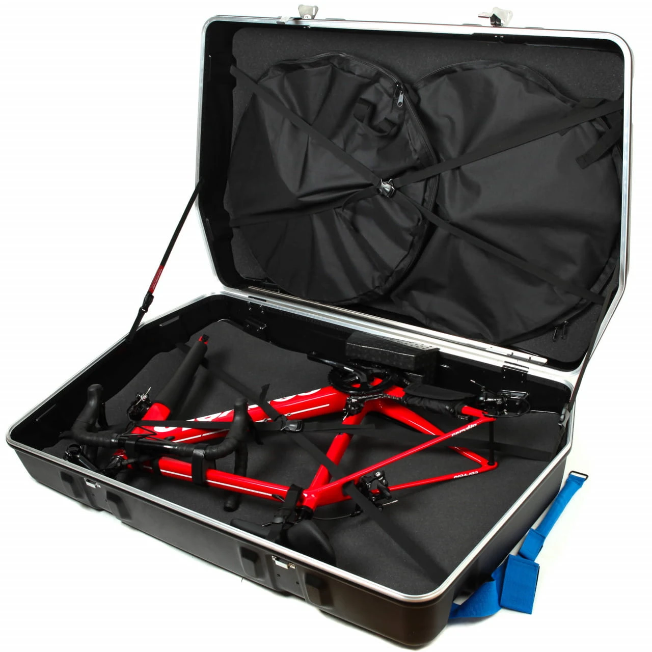 Wenn auf Flugreisen dein Bike kompromisslos geschützt werden soll, benutze einen Hartschalenkoffer mit ausreichend Volumen wie diesen Bike Case II.