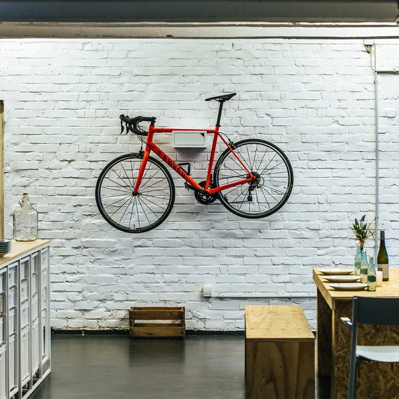 Die optisch sehr ansprechenden Wandhalterungen von BicycleDudes, ermöglichen eine platzsparende Unterbringung deines Rades in der Wohnung, Garage oder im Keller. Besonders praktisch ist, dass es nicht nur eine Halterung ist, sondern auch gleichzeitig Stauraum bzw. Platz für Dekoration bietet.