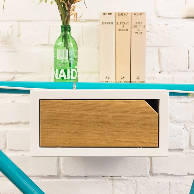 Die optisch sehr ansprechenden Wandhalterungen von BicycleDudes, ermöglichen eine platzsparende Unterbringung deines Rades in der Wohnung, Garage oder im Keller. Besonders praktisch ist, dass es nicht nur eine Halterung ist, sondern auch gleichzeitig Stauraum bzw. Platz für Dekoration bietet.