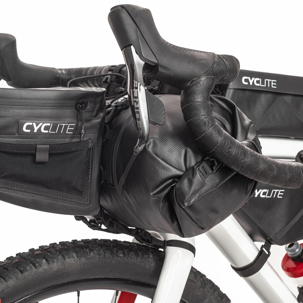 CYCLITE ist eine junge Firma aus den bayerischen Alpen – mit einem einfachen Ziel: das leichteste Bikepacking-System auf dem Markt zu entwickeln! Und auf dem Weg dorthin ist die HANDLE BAR ROLL BAG ein Meilenstein, denn sie kann bei nur 198 Gramm Eigengewicht bis zu 12,6 Liter Volumen aufnehmen. Ideal also, um Bikepacking-Gepäck wie Schlafsäcke, Nahrung und anderes unterzubringen. Außerdem lässt sie sich prima mit der stromlinienförmigen AERO BAG kombinieren.