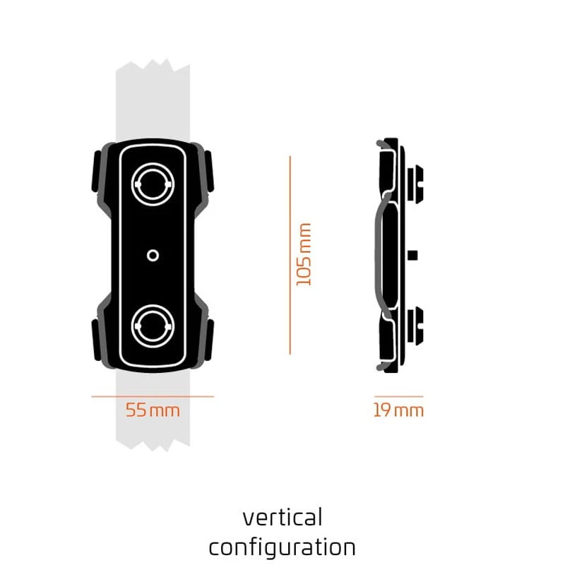Die Magnethalterung ist in der horizontalen Konfiguration für Gürtel und Schlaufen mit einer Breite zwischen 25 und 40 mm und einer Höhe bis zu 2 mm geeignet – dazu gehören die meisten Hosengürtel sowie die bei Rucksäcken weit verbreiteten, aufgenähten Zubehör-Schlaufen. In der vertikalen Variante an Rucksackgurten sind Breiten zwischen 45 bis 75 mm und 4 bis 15 mm Dicke zulässig.
