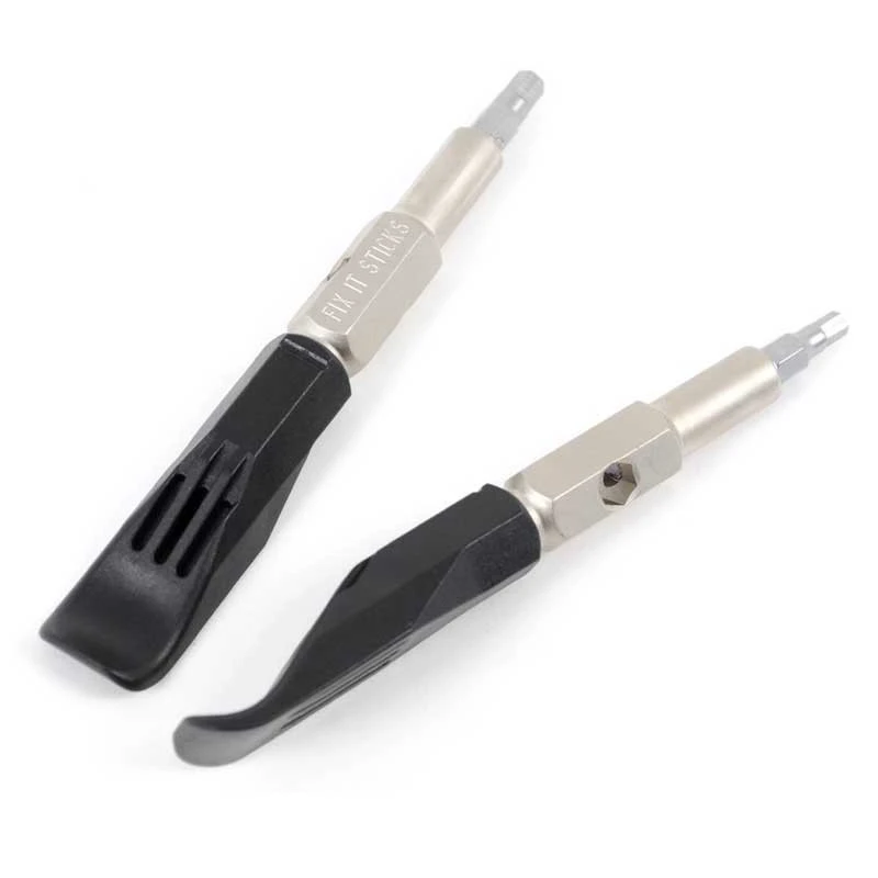 Diese sehr stabilen Reifenheber ergänzen die Replaceable FixItSticks zur Funktion eines Reifenhebers. Das Beste: Der Reifenheber wird durch den Metall-Stick natürlich extrem stabil und kann nicht verbiegen oder brechen. Damit wird das Reifenheben zum Kinderspiel