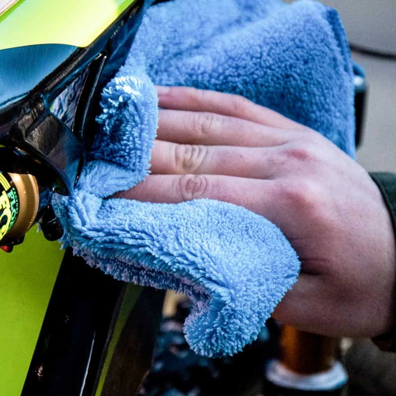 Die Split-Fibre“ Technologie erhört die Oberfläche des Tuchs und ermöglicht müheloses trockenwischen und polieren, ohne Wasch- und Politurreste zu hinterlassen. Dabei ist das Tuch sehr saugfähig. Nach der Bike-Wäsche kann man das gesamte Rad mühelos von Wasser und Wasserflecken befreien.
