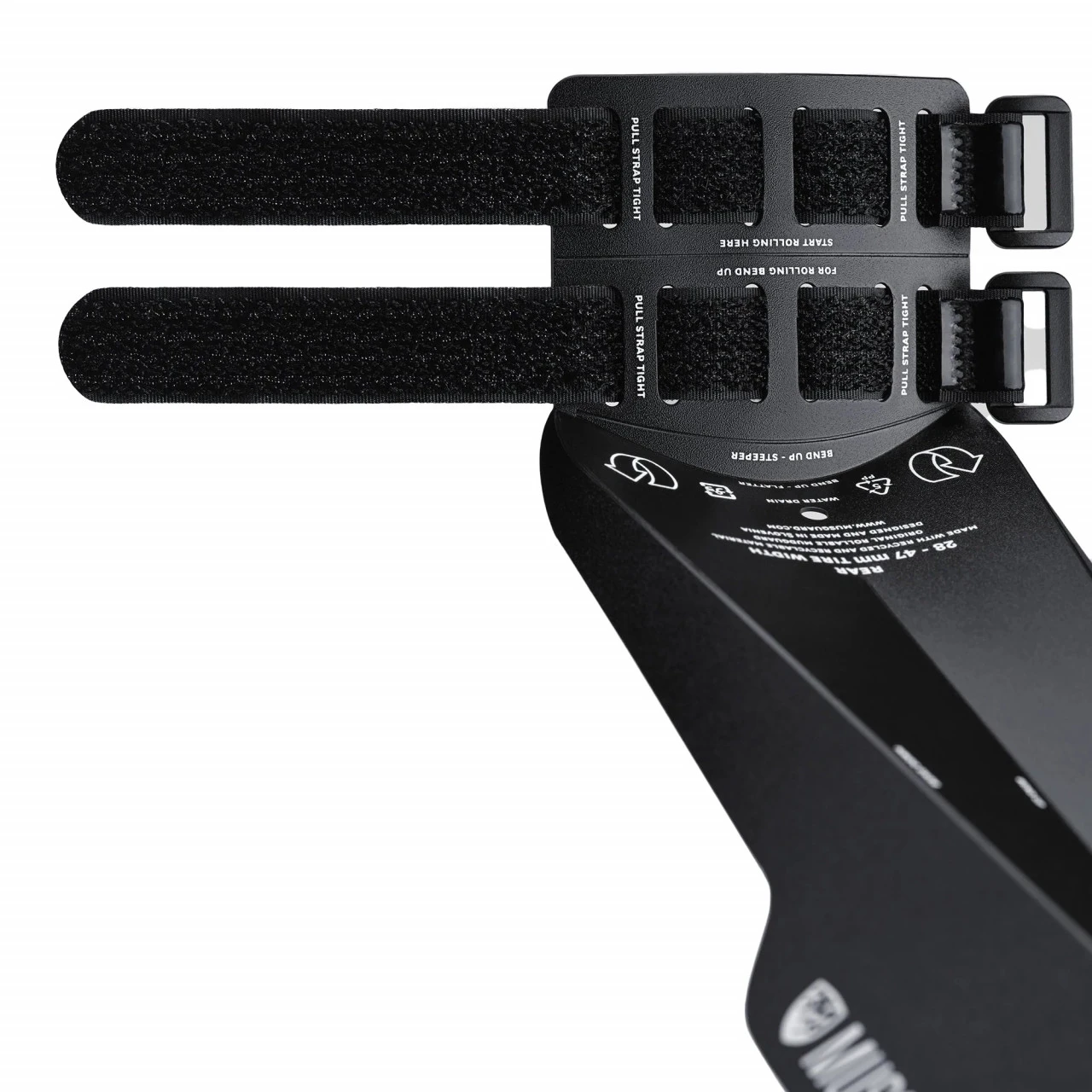 Zum Festmachen musst du einfach die Enden mit den Klettlaschen hochbiegen und diese dann fest um Sattelstütze bzw. Unterrohr rollen. Sie sind für Bikes mit verschiedenen Rohrdurchmessern geeignet. Das hintere Schutzblech lässt sich außerdem in verschiedenen Winkeln einstellen – je nachdem, was für dein Bike am besten funktioniert.