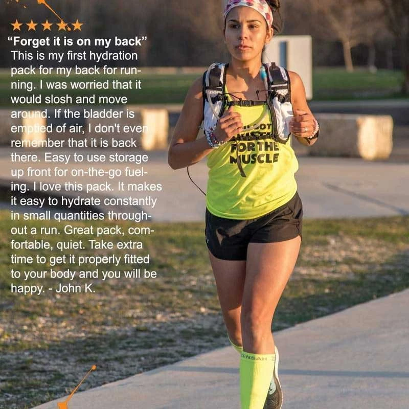 Das Endurance Pack ist speziell für lange Aktivitäten konzipiert. Wir haben es für lange Läufe, Wanderungen und Radfahrten getestet. Es schmiegt sich sehr gut am Körper an, nichts wackelt, nichts scheuert! Es bietet genügend Platz für die 2 L Trinkblase plus etwa 4 Liter Gepäck (z.B. Ersatzklamotten, Jacken, usw.). Am Gurt befinden Sich viele sehr dehnbare Taschen für Gels, Riegel und sogar große Smartphones wie die iPhone Plus Modelle. Hinten befinden sich noch Gummibänder, die so angebracht sind, dass man auch außen noch Kleidung oder ähnliches anbringen kann.