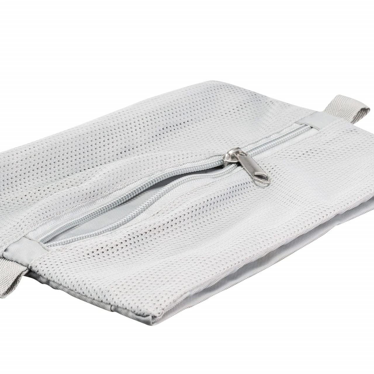 Kleine graue Innentasche mit großem Nutzen: Wenn du Bargeld, Karten, Handy und andere wichtige Utensilien mitnehmen willst, passt dieser Mesh-Beutel mit etwas kräftigerer Rückwand perfekt in den QR, wo er mit zwei Schlaufen befestigt werden kann. Er funktioniert wie ein Umschlag für Bargeld, Handy und Wertgegenstände mit zusätzlichem Reißverschlussfach. So kannst du deine Wertsachen sicher vom anderen Gepäck trennen, damit in der Tasche nichts durcheinander kommt.